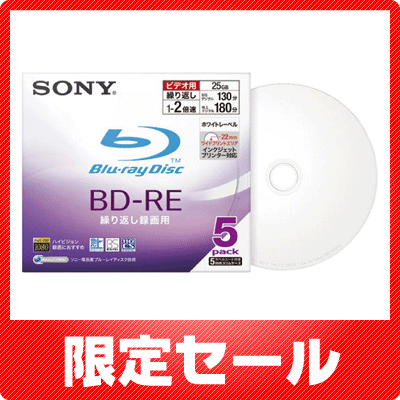 【在庫あり】【限定セール】ソニー(SONY) 5BNE1VBPS2 (BD-RE 2倍速 5枚) ビデオ用ブルーレイディスク(書換型:繰り返し録画用/片面1層) ●ソニーが誇るアキュコア(AccuCORE)技術採用●傷・埃・汚れに強い高性能なハードコート(アキュコア技術)を採用●ノンカートリッジタイプ●繰り返し録画が可能●インクジェットプリンター対応モデル(ワイドプリントエリア)●2倍速対応ディスク(Blu-ray Disc Rewritable Forma (更新日時:2011/01/19 21:58) Supported by 楽天ウェブサービス |